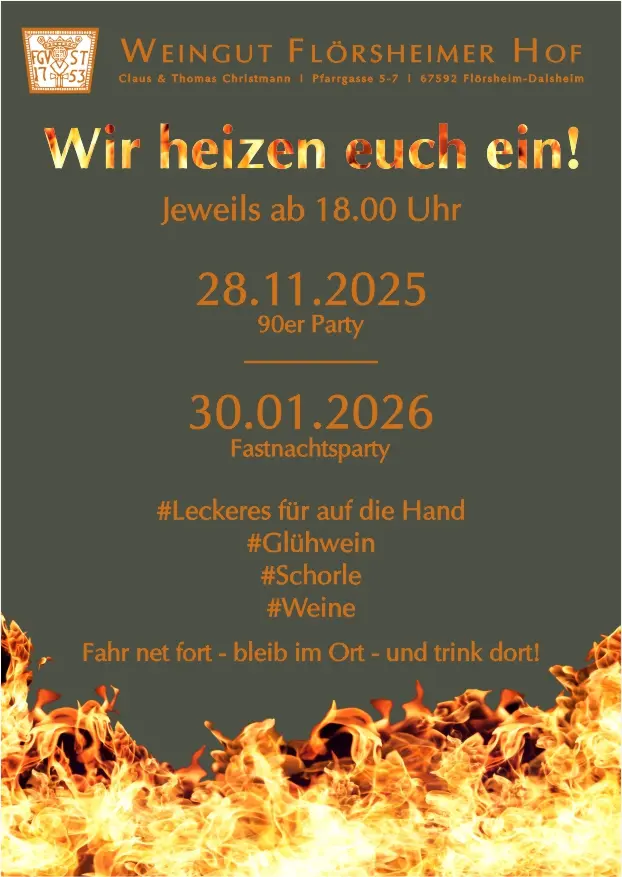 Da habt Ihr eure Pflichttermine! Am 28.11.25 heizen wir euch wieder richtig ein. Bei Glühwein, Schorle, Leckereien für auf die Hand und den besten Beats aus den 90iger Jahren könnt Ihr euch mal wieder richtig gehen lassen.